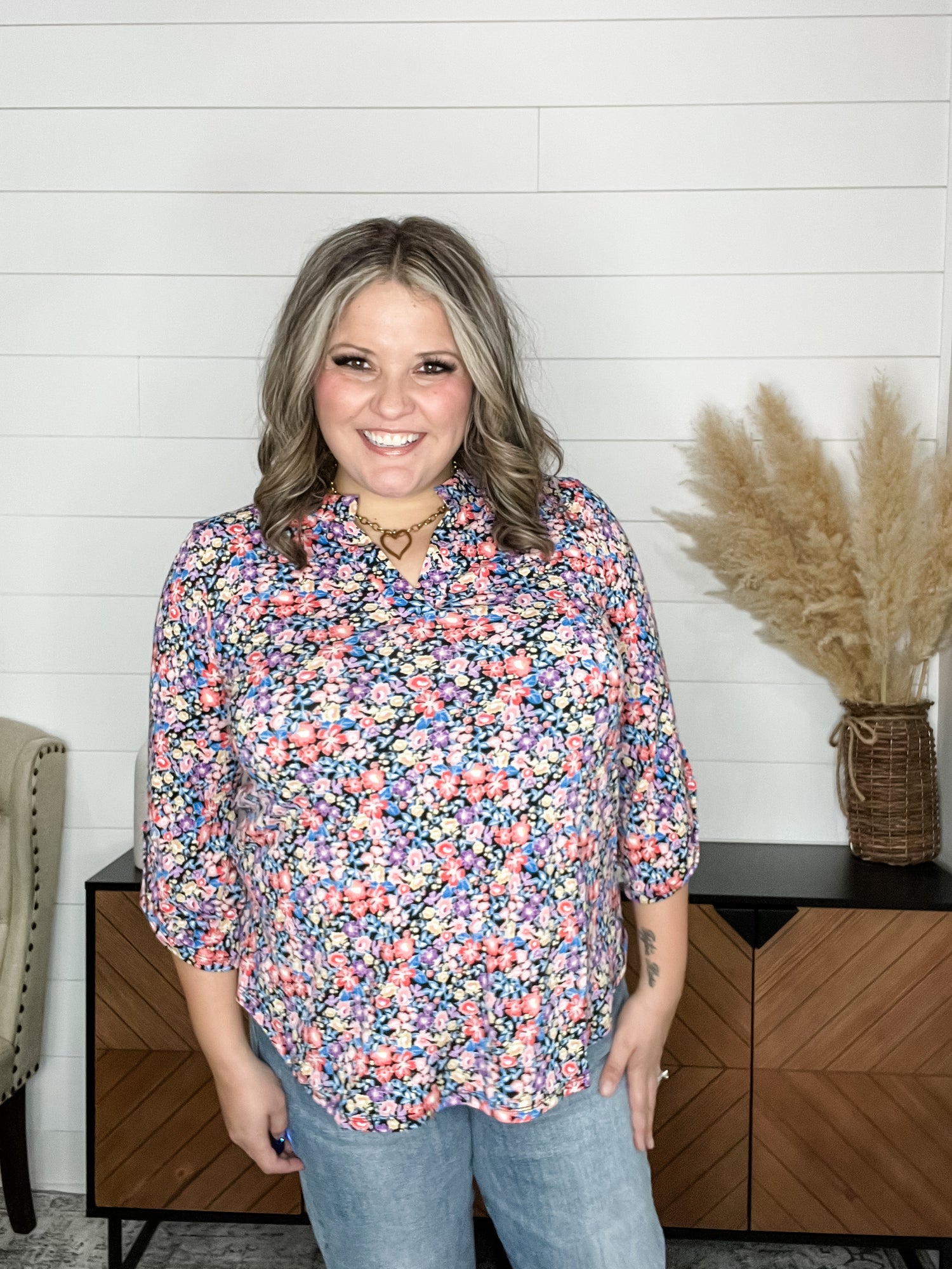 "Gumdrop" Dear Scarlett 3/4 Sleeve Split Neck