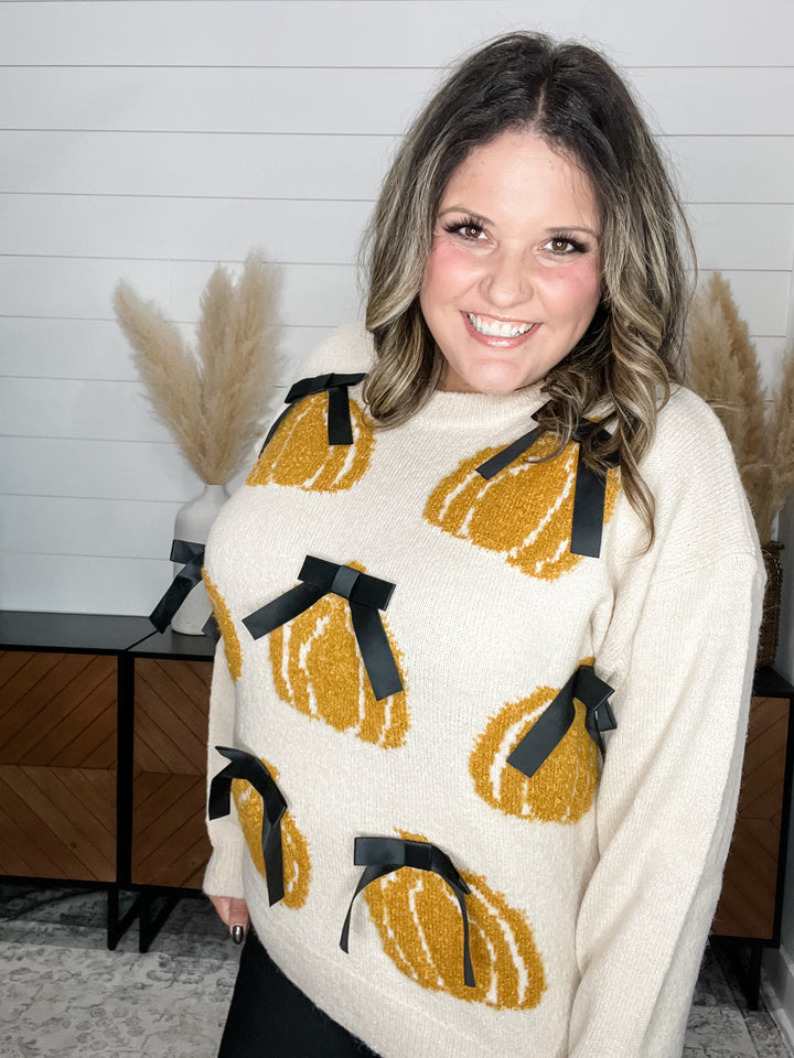 Enamel Jack-O-Lantern, Orange Pearl, & Rhinestone Studded Knotted Headband