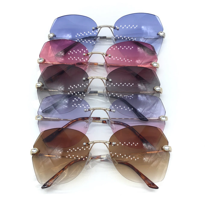 Rimless Rhinestone Accent Gradient Lens Sunglasses (Multiple Options)