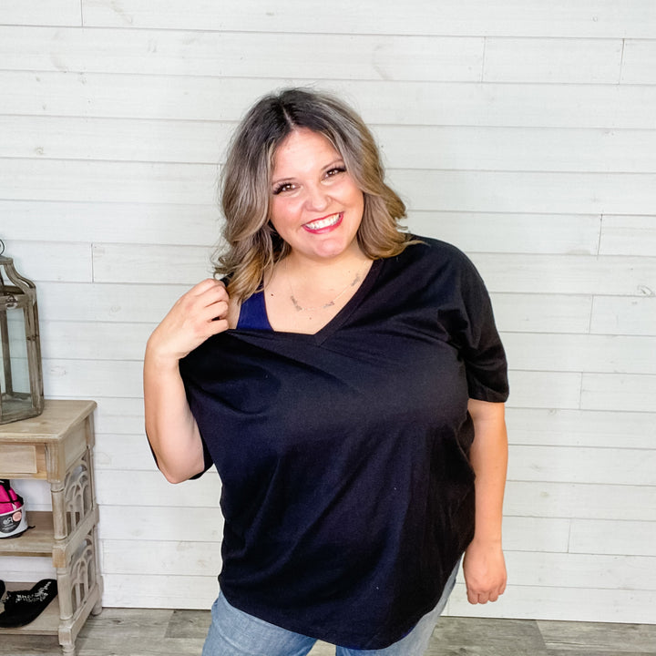 "Timeframe" Floral Lizzy 3/4 Sleeve Split Neck