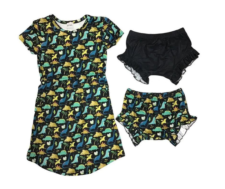 "Ryland" Double Ruffle Cap Sleeve (Black and Coral)