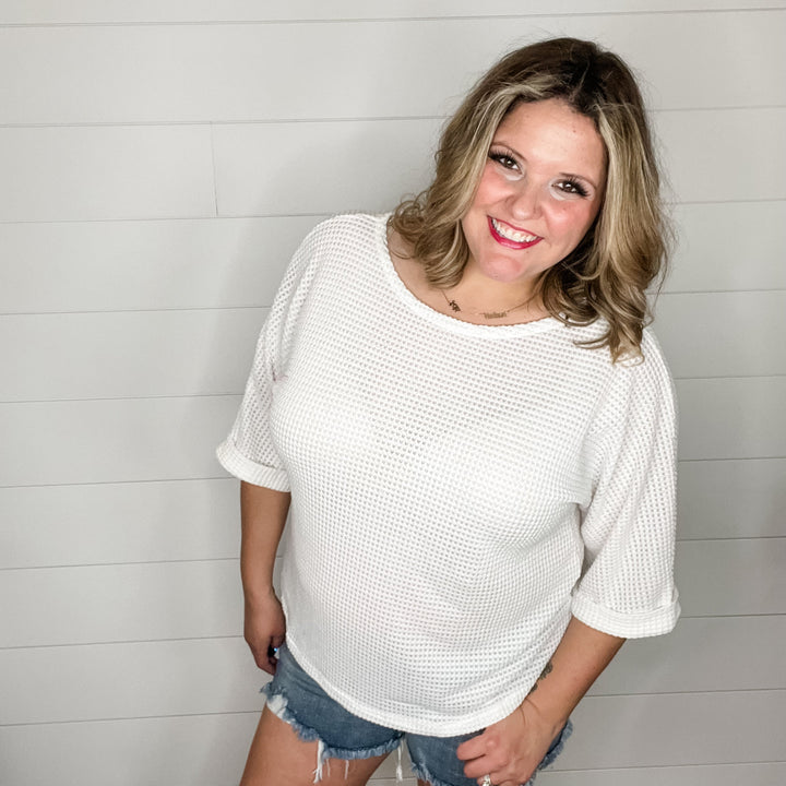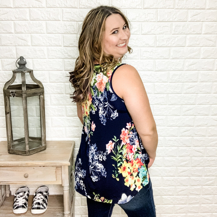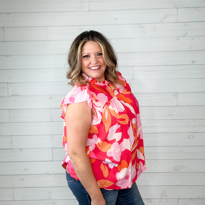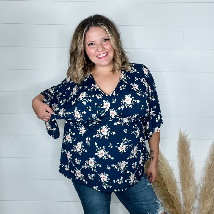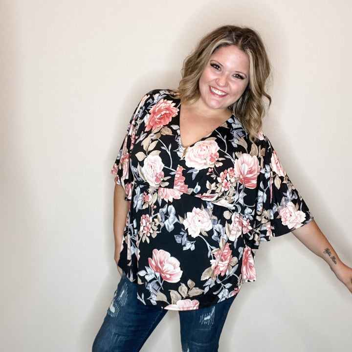 "Perry" Floral Lizzy 3/4 Sleeve Split Neck