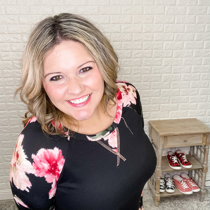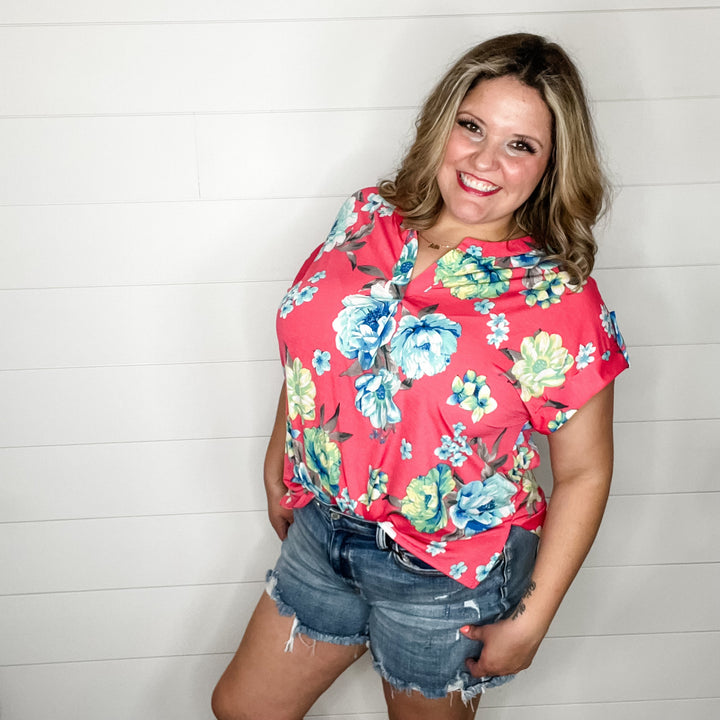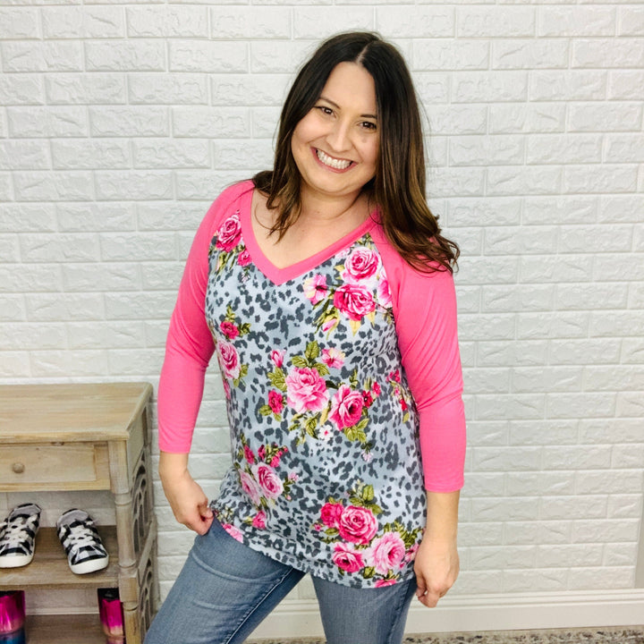 "Ellie" Floral 3/4 Sleeve Split Neck