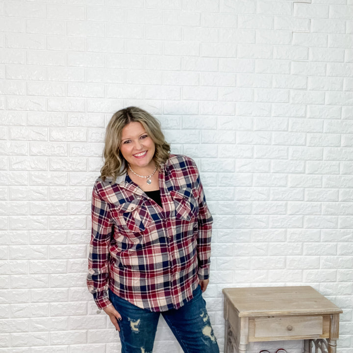 "Carissa" Hooded Flannel (Detachable Hood/Burgundy)