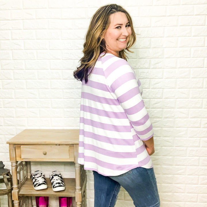 "It's A Breeze" Striped 3/4 Sleeve (Purple)