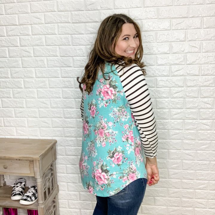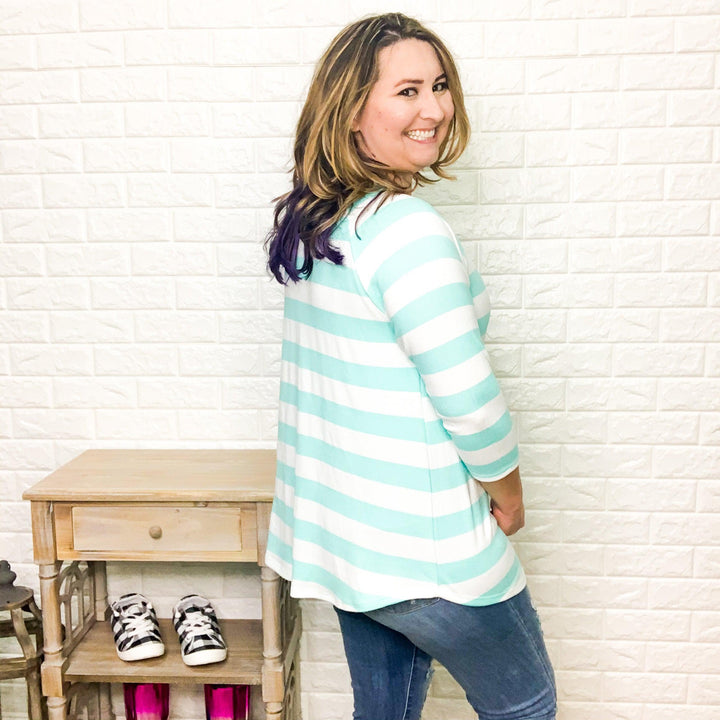 "It's A Breeze" Striped 3/4 Sleeve (Mint)