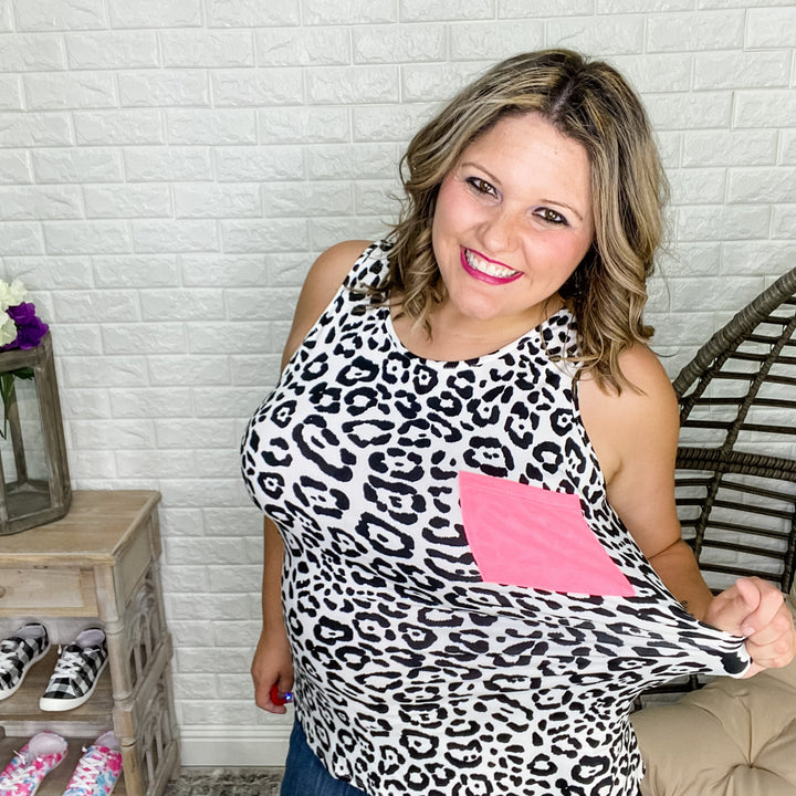 "Lana" Animal Print with Pink Pocket Tank Top
