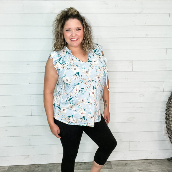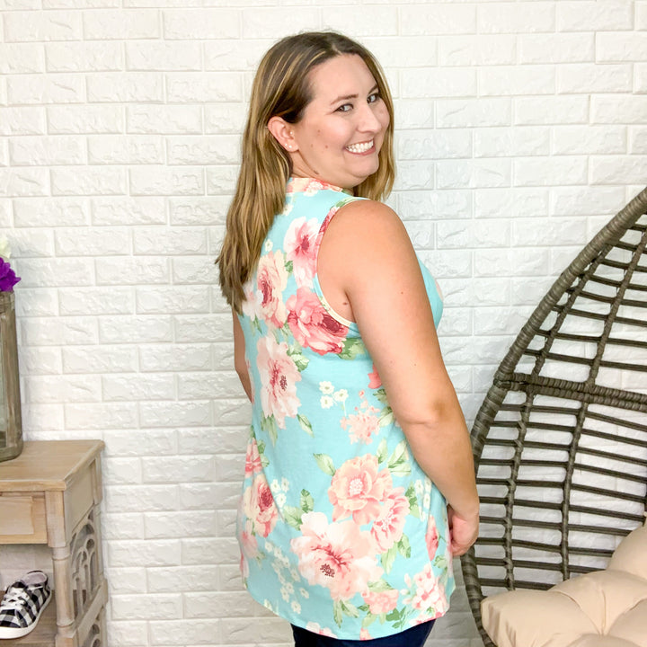 "Lily" Split Neck Floral Tank with Criss Cross Design