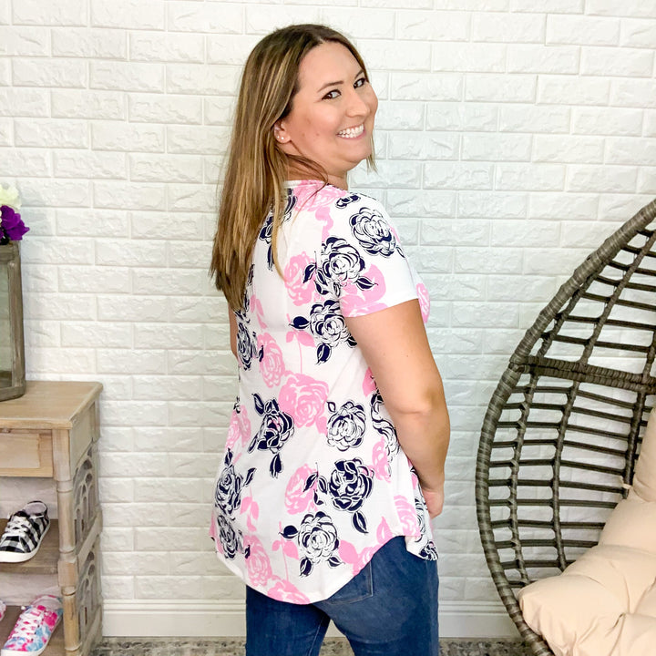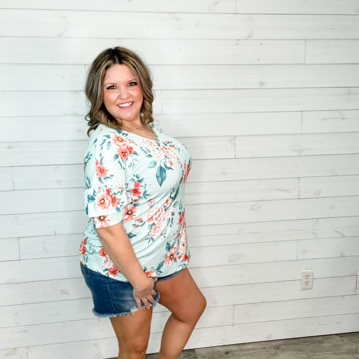 "Lifetime" Floral Split Neck Lizzy 3/4 Sleeve Split Neck