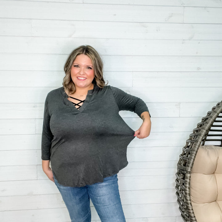 "Tinker" 3/4 Sleeve Split Neck