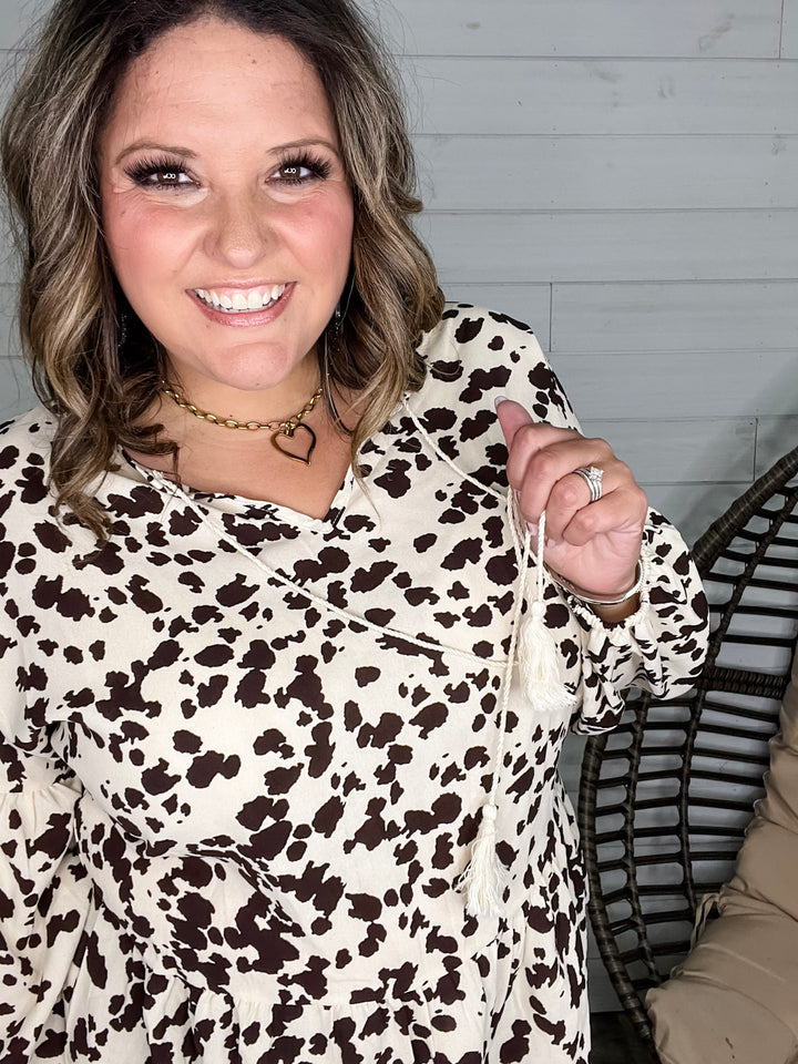 size down 1 or 2 sizes"Full Steam Ahead" Oversized Mini Ruffle Long Sleeve
