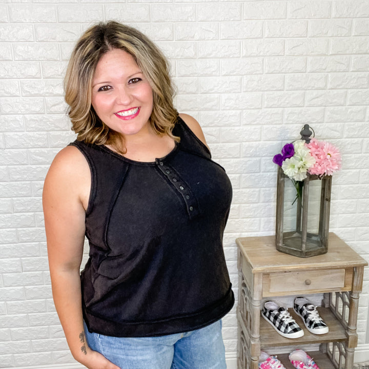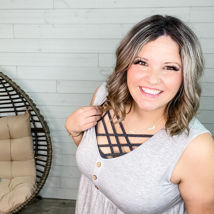 "Lottie" Babydoll V Neck Tank Top (Neon Orange and Grey)