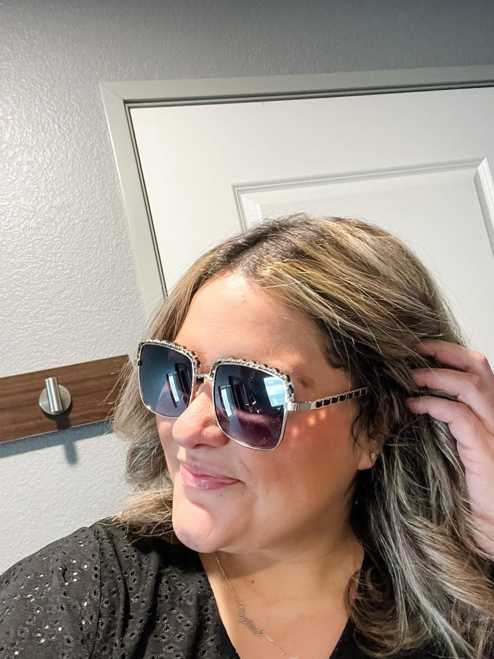 Square Frame Braided Design Sunglasses (Black)