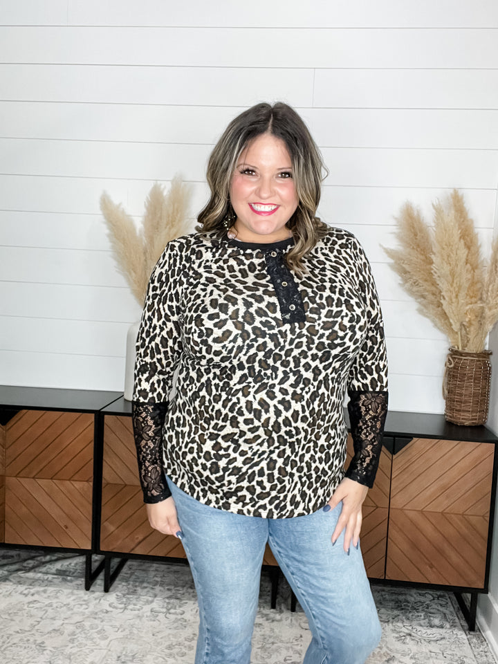 "Winfrey" Animal Print Long Sleeve with Lace Detail
