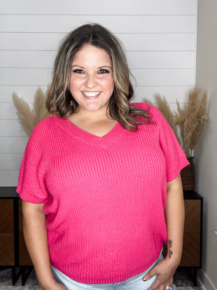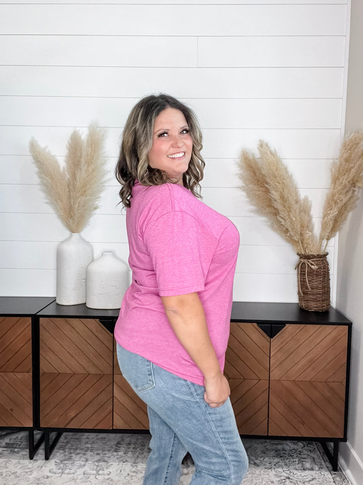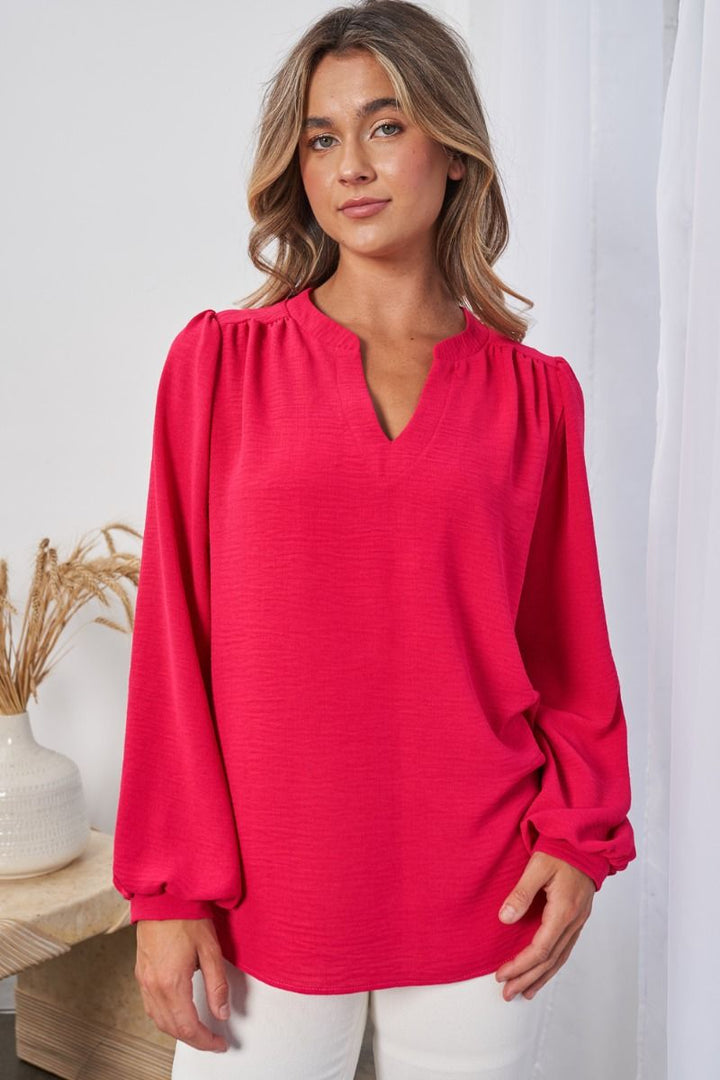 "Gamble" Long Sleeve Split Neck (Fuchsia)