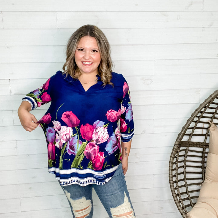 "Elliot" Floral Lizzy 3/4 Sleeve Split Neck