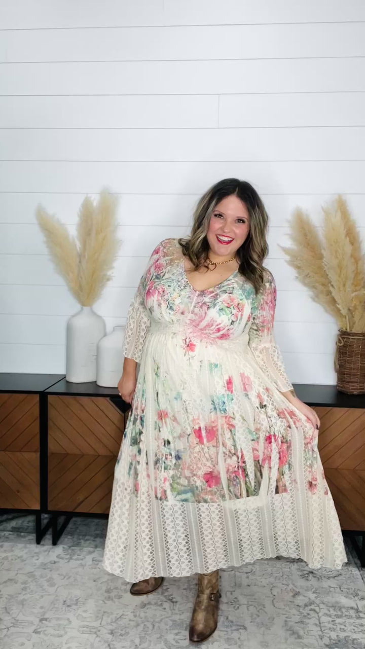 Dear Scarlett "Well Looky Here" Floral 3/4 Ruffle Sleeve Babydoll