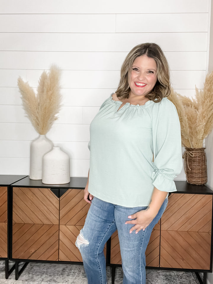 "Stanlee" 3/4 Sleeve Split Neck Babydoll