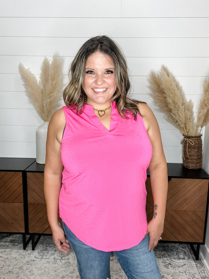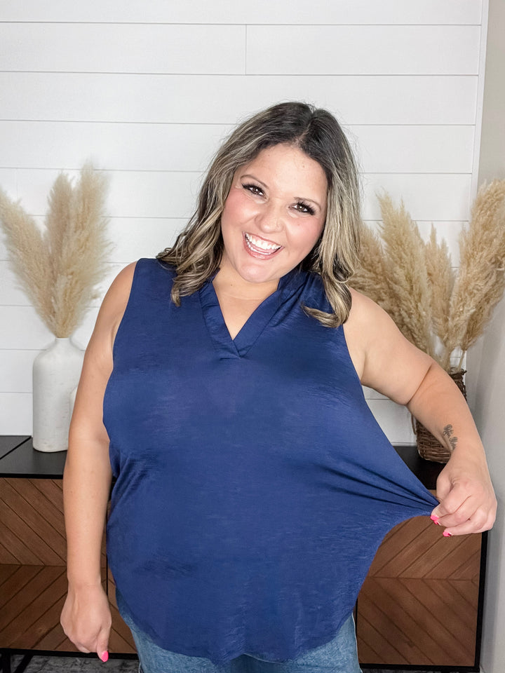 "Ok Maybe This" Sleeveless Split Neck (Blue)