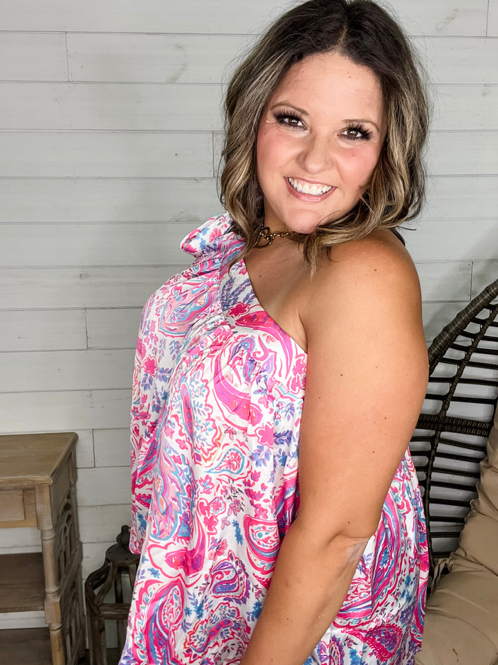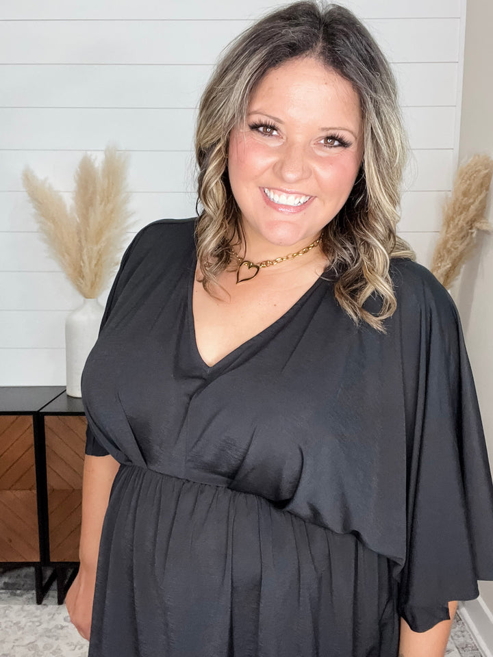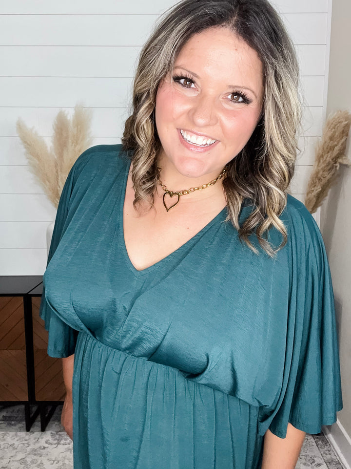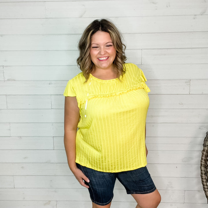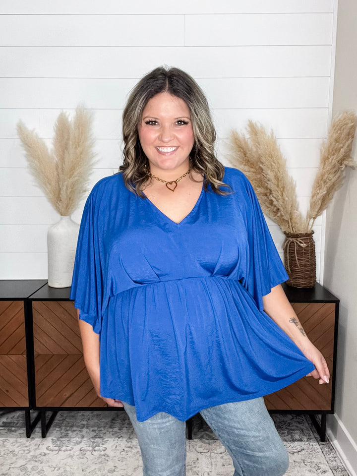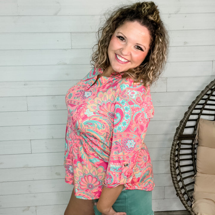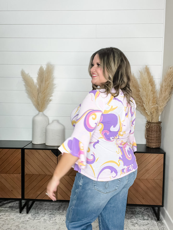 "Harper" Floral 3/4 Ruffle Sleeve Split Neck