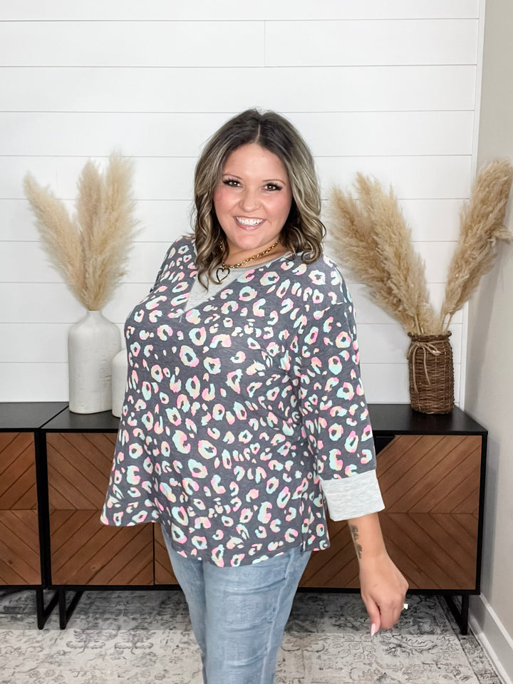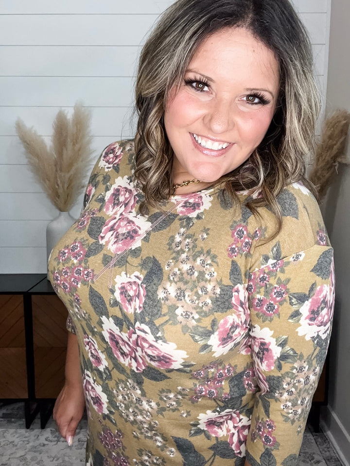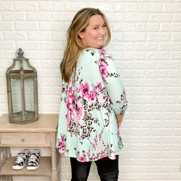"Heidi" Floral & Animal Print 3/4 Sleeve with Pockets