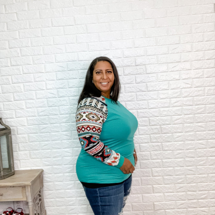 "Helen" Solid Body with Aztec Accent Long Sleeve
