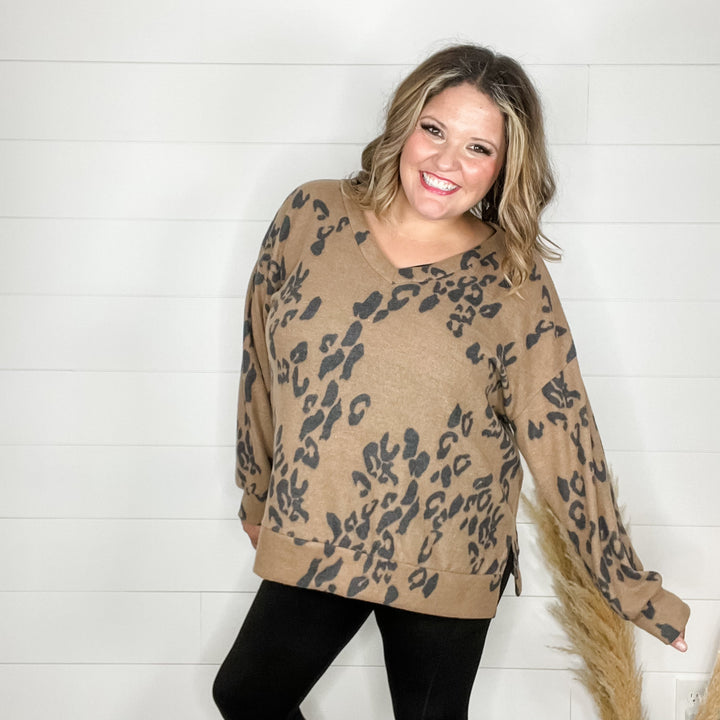"Renegade" Long SLeeve Lace Up Front V Neck with Animal Accent
