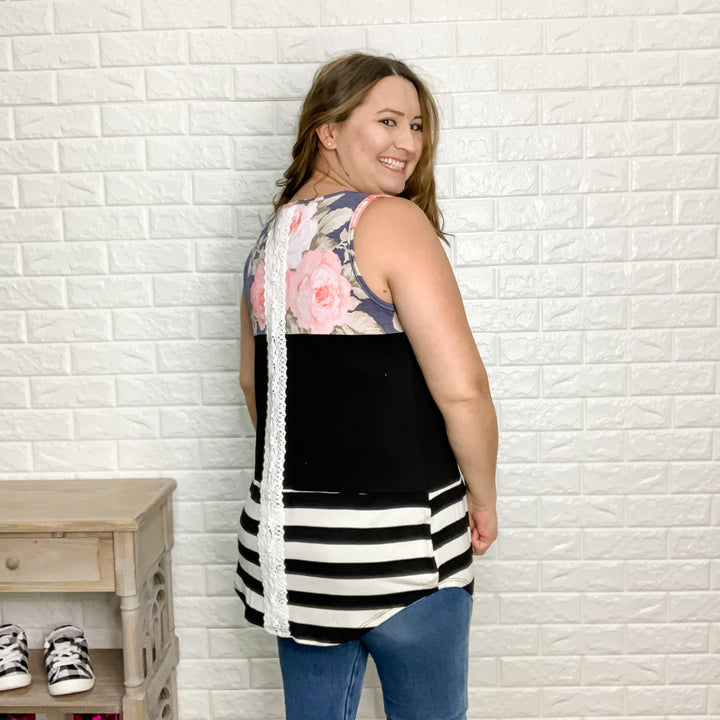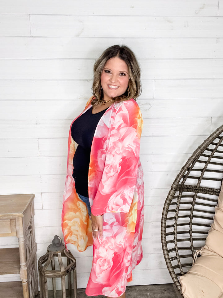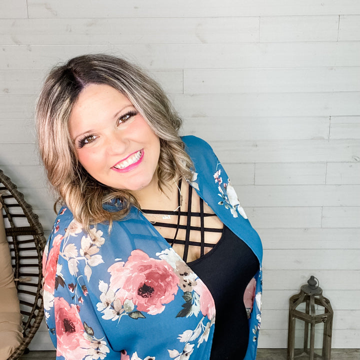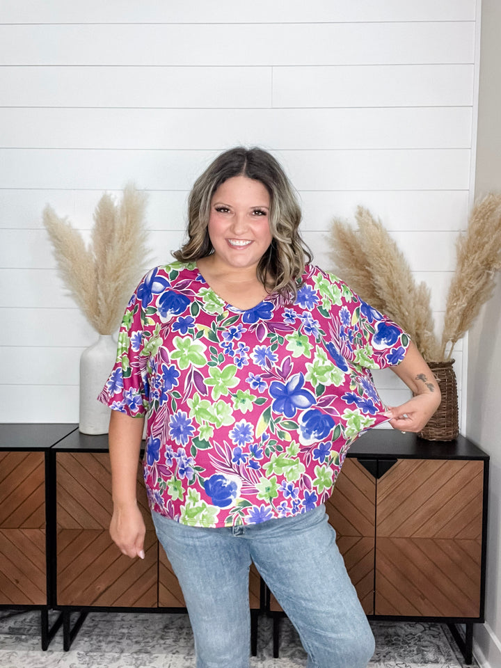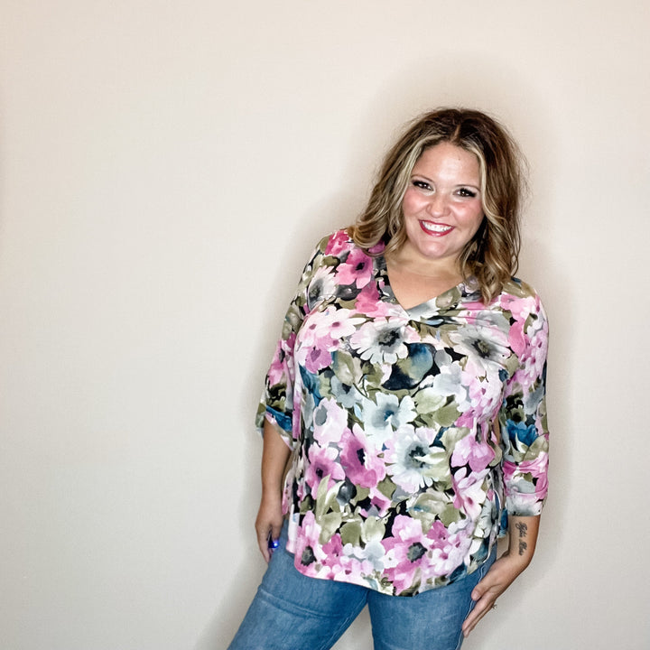 "Romancing" Floral Lizzy 3/4 Sleeve Split Neck