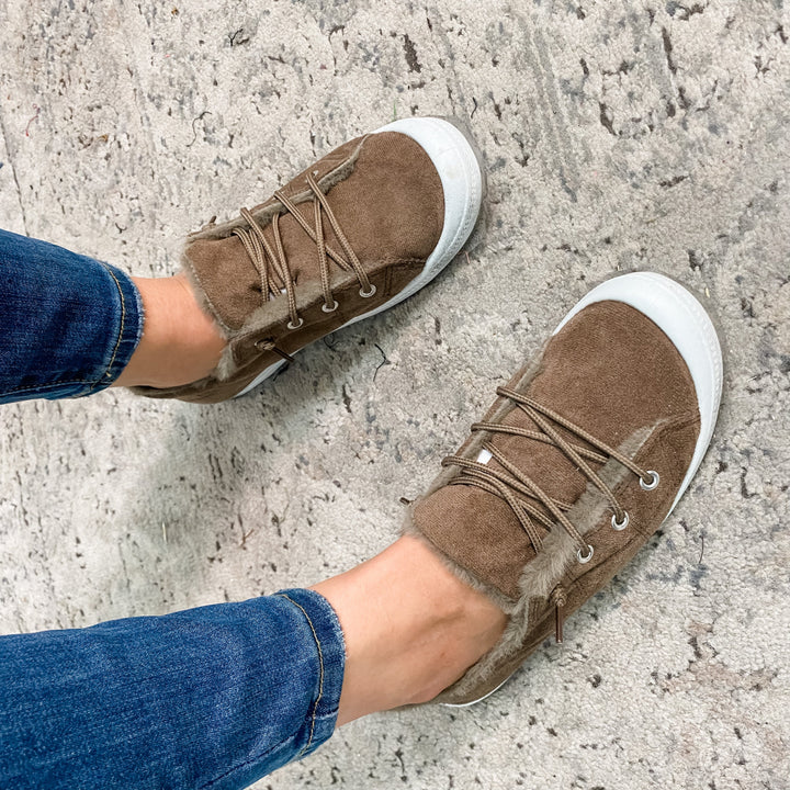 "Ronnie Ann" By Gypsy Jazz Slip on Faux Suede & Fur Sneaker (Brown)