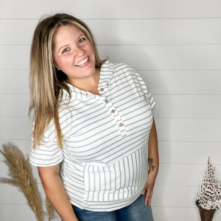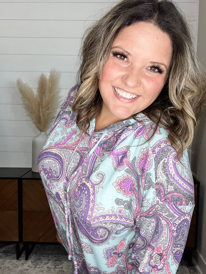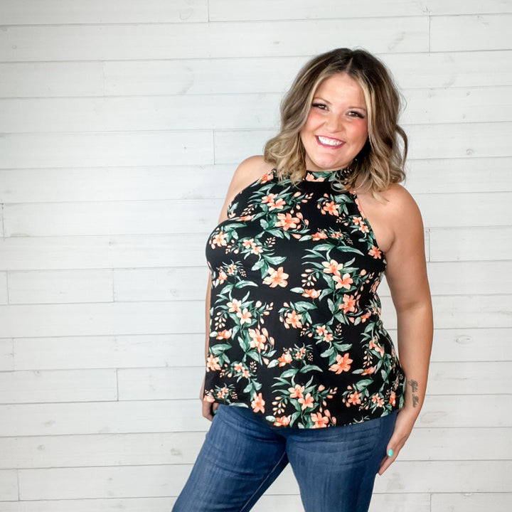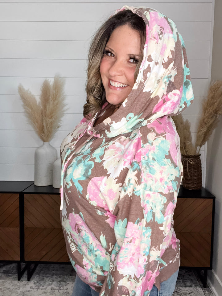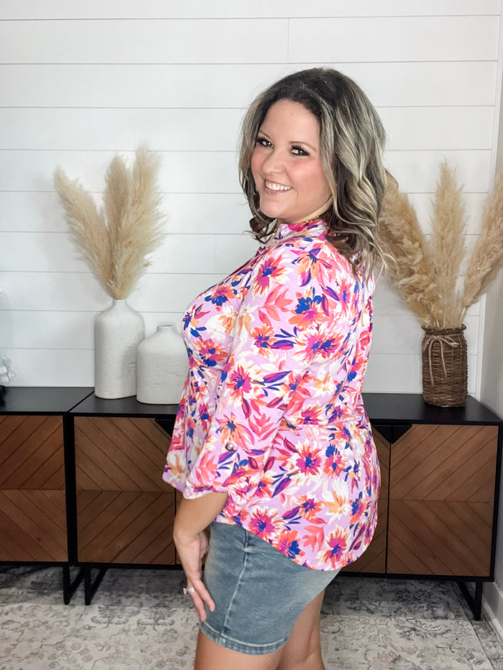 "Sage Advice" Waffle Body V Neck Long Floral Sleeve Top