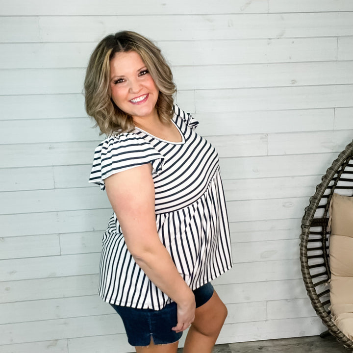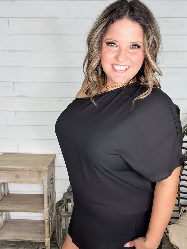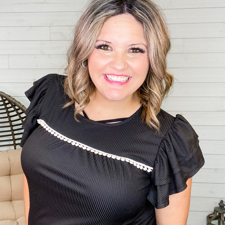 "Ryland" Double Ruffle Cap Sleeve (Black and Coral)