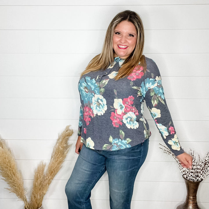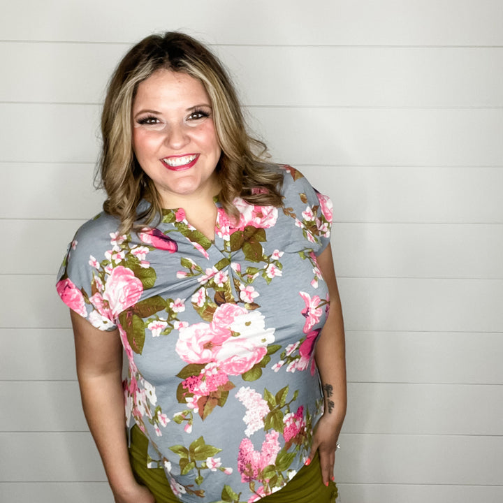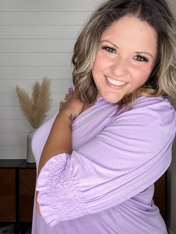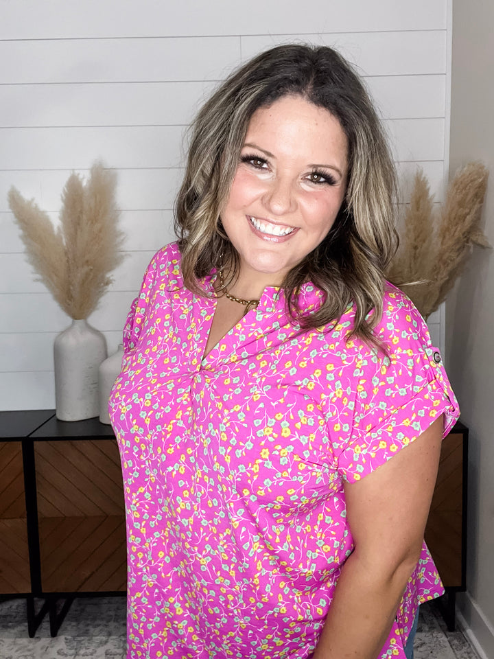 "Shocking" 3/4 Smocked Sleeve Split Neck (Hot Pink)