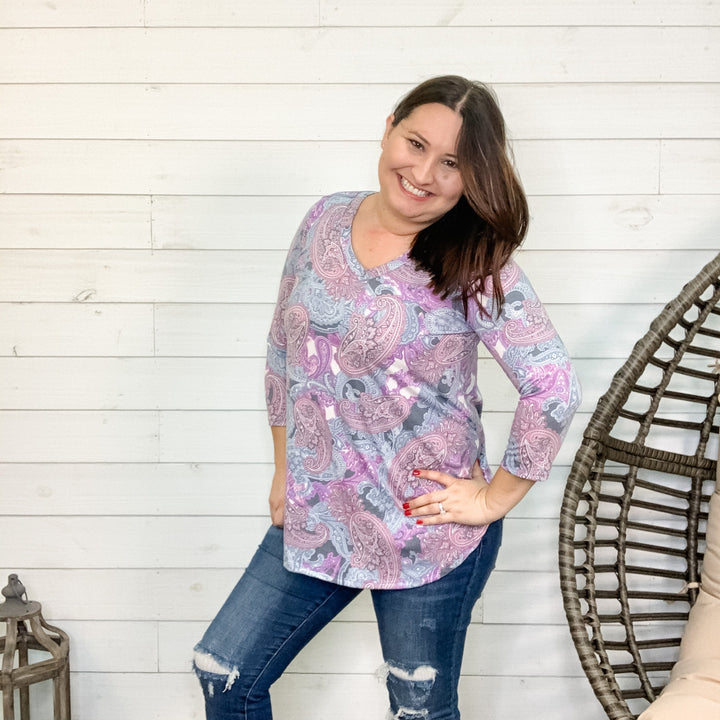 SAVE 41%"Shauna" 3/4 Sleeve Paisley V Neck