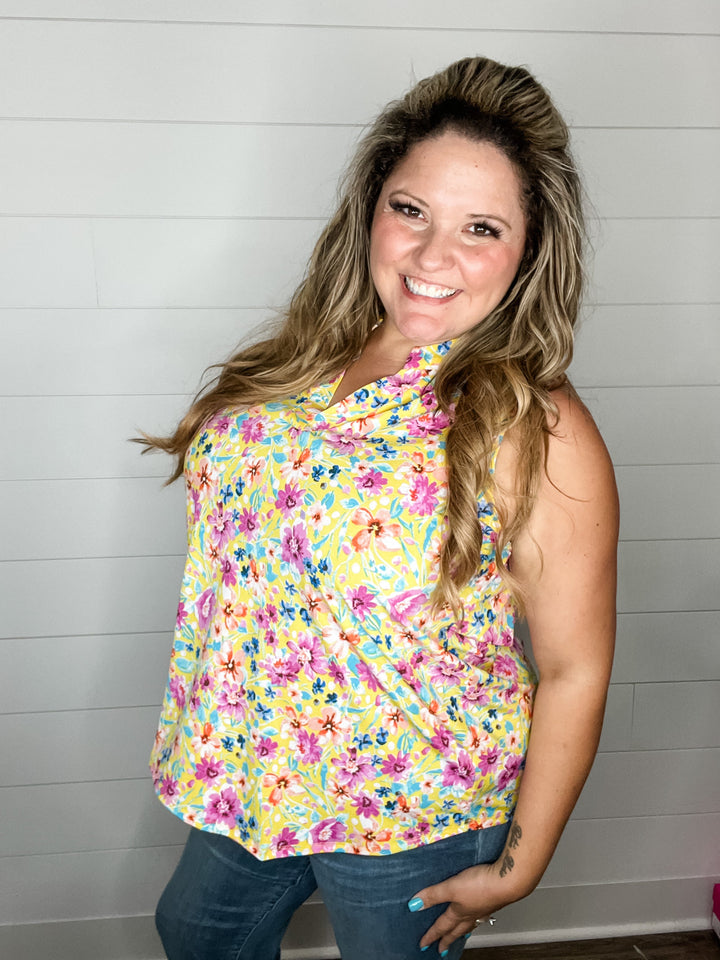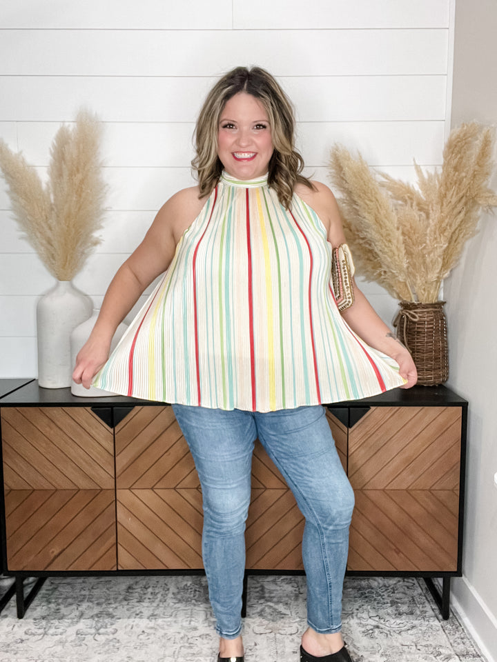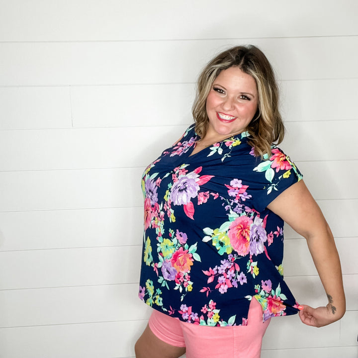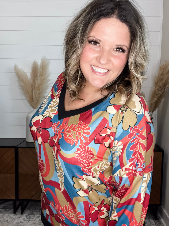 "Stacy" Long Sleeve Floral & Stripe Top with Front Pocket