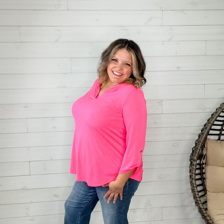 "Solid Ground" Lizzy 3/4 Sleeve Split Neck (Olive)