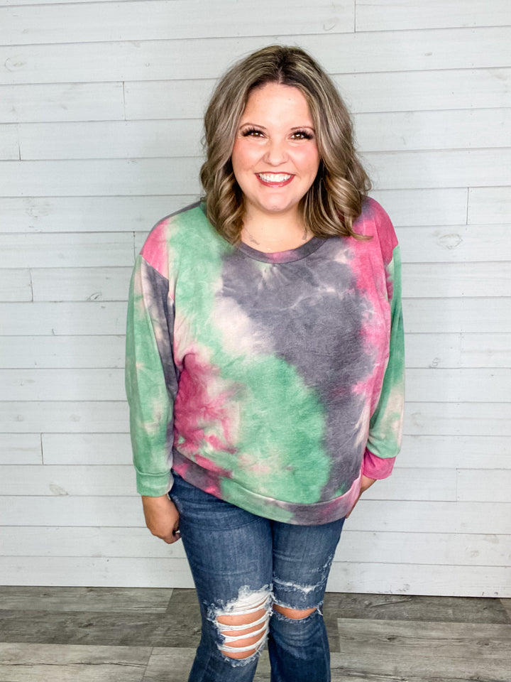 "Sonnet" Long Sleeve Tie Die Crew Neck