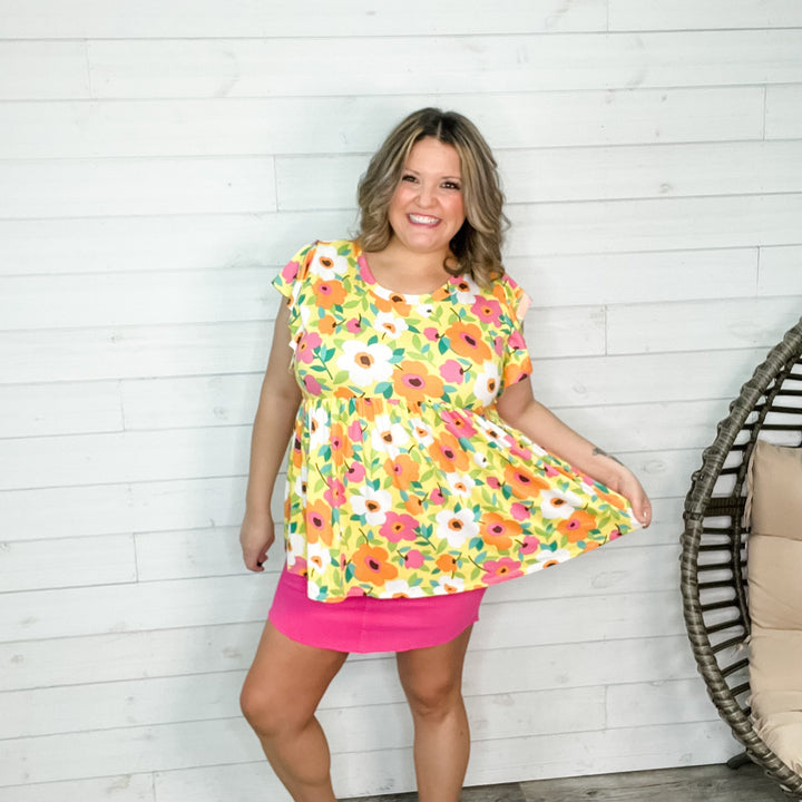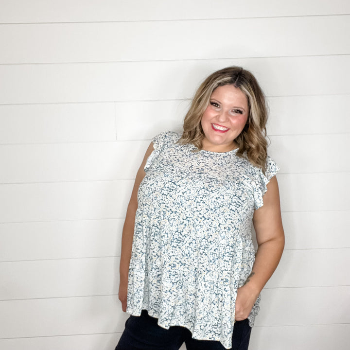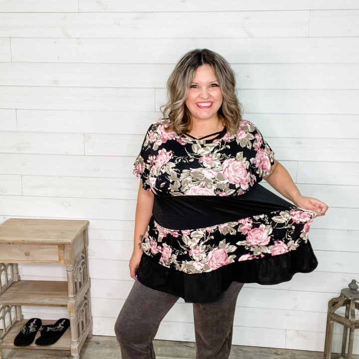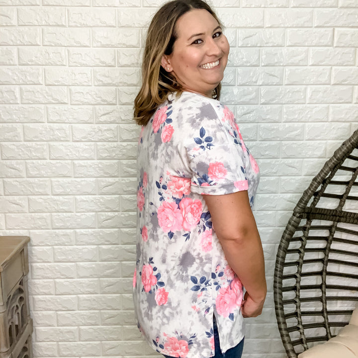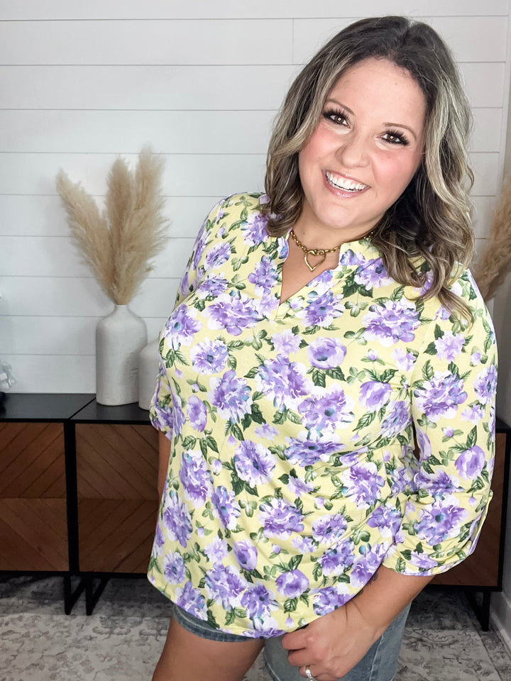 "Stella" Floral Lizzy 3/4 Sleeve Split Neck