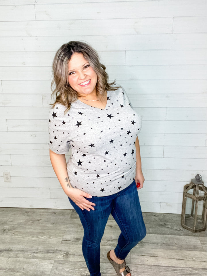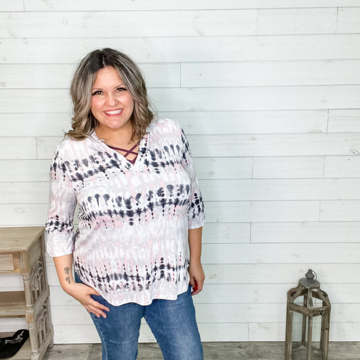 "Steffy" Lizzy 3/4 Sleeve Split Neck