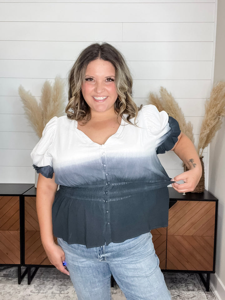 "Sweet Magnolia " Long Floral Sleeve Solid Body Top
