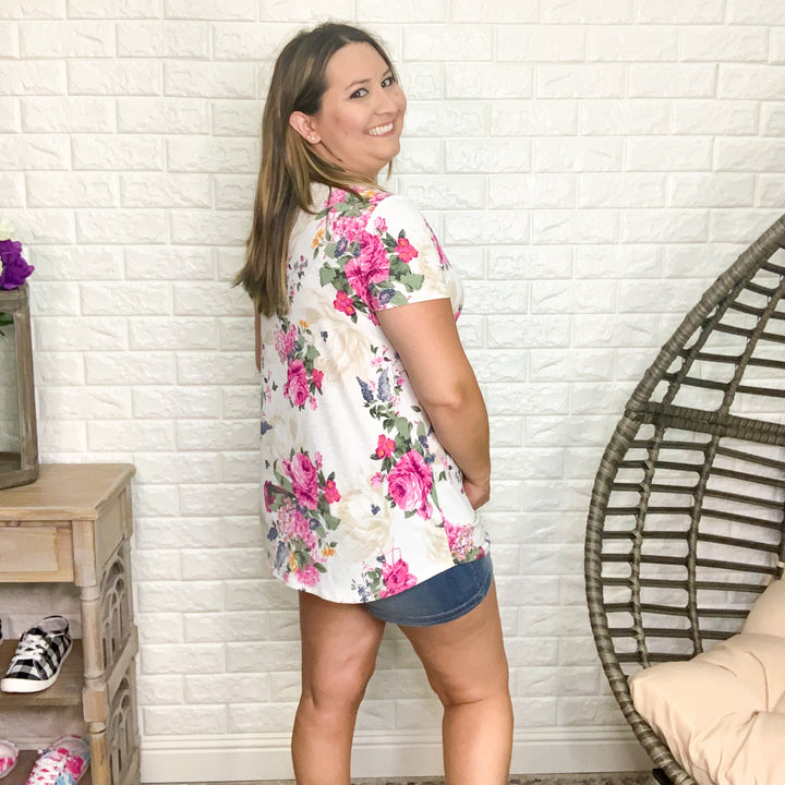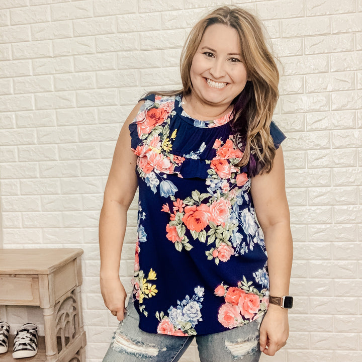 "Sweetie Pie" Floral Ruffle Front Cap Sleeve