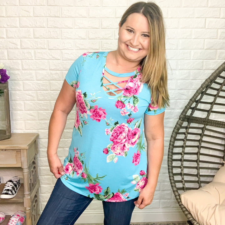 "Tammy" Floral Criss Cross Cutout Front Design (Cream)