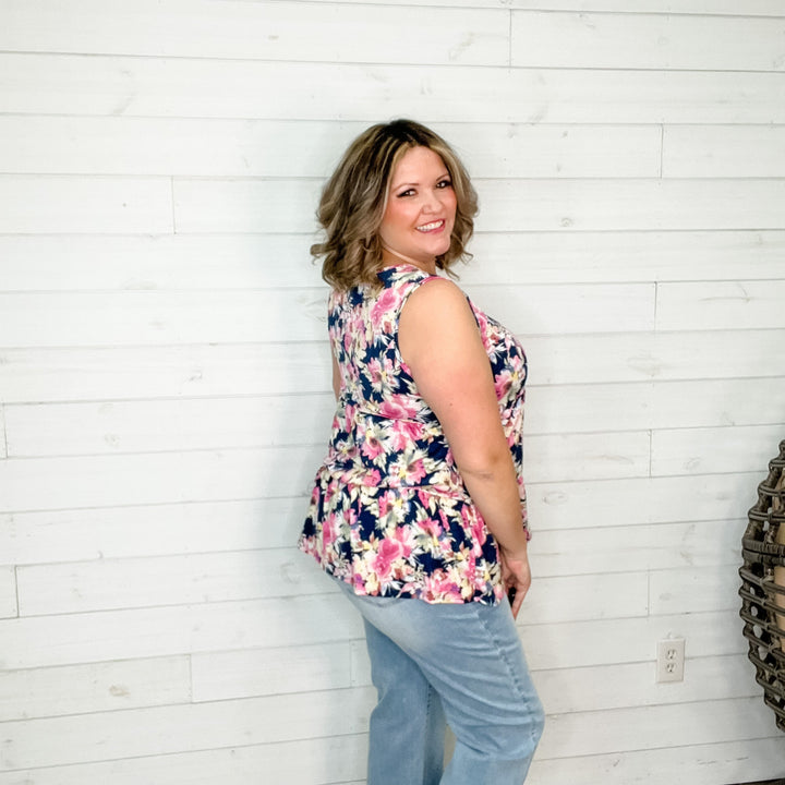 "Up To You" Ribbed Henley Style with Floral Long Sleeves (Lavender)