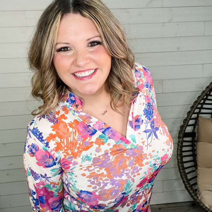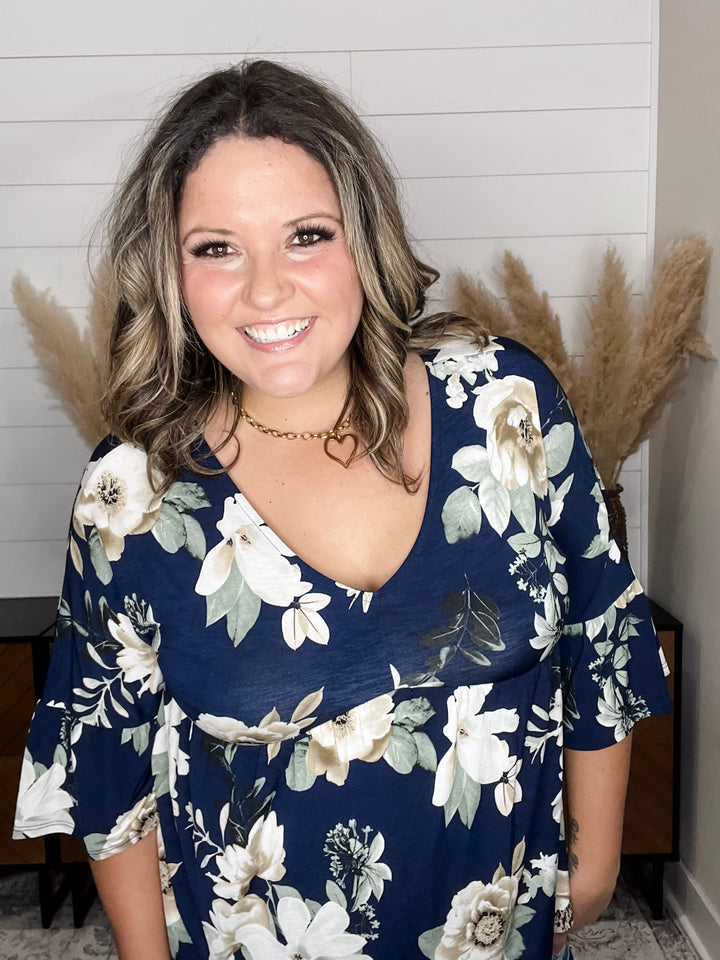 "Waverly" Floral 3/4 Sleeve V-Neck