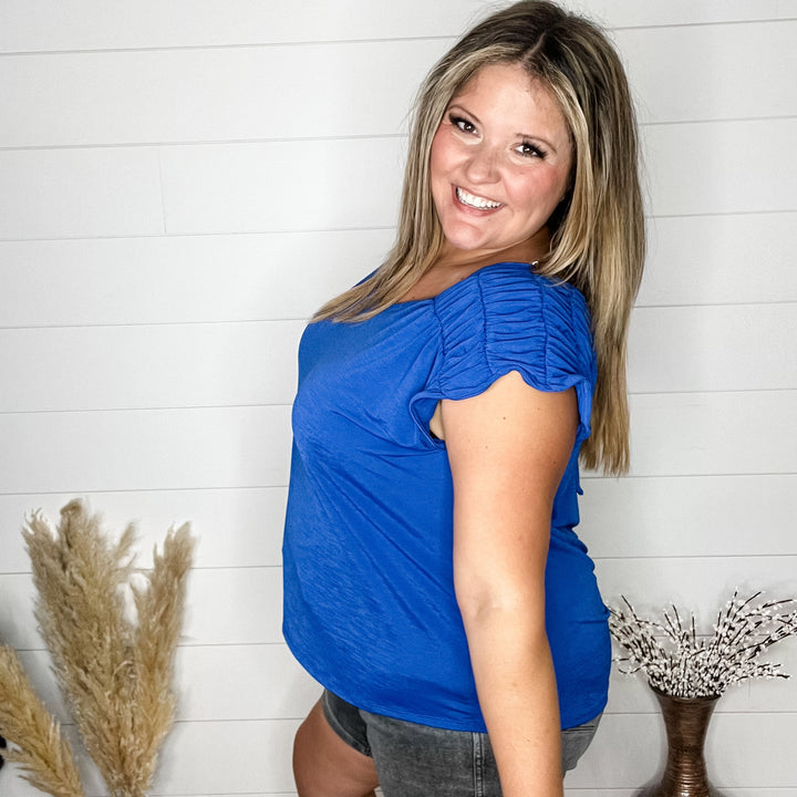 "Ward" Ruched Shoulder with Back Tie Detail Tank (Royal Blue)