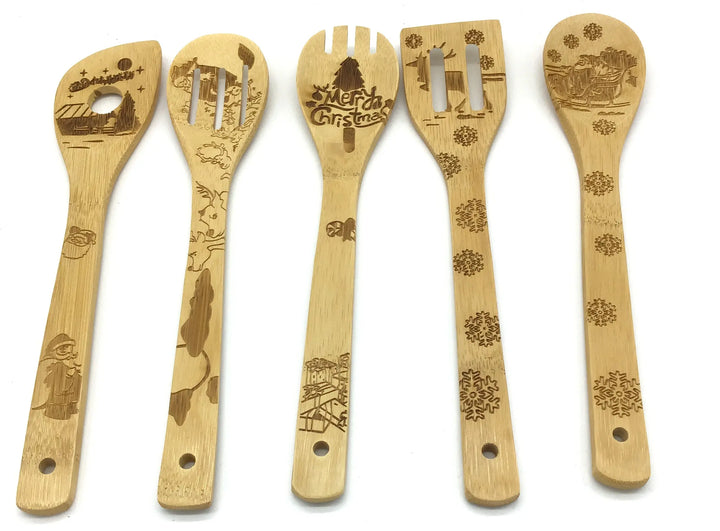 Etched 5 Piece Wooden Kitchen Utensil Sets (Multiple Characters)