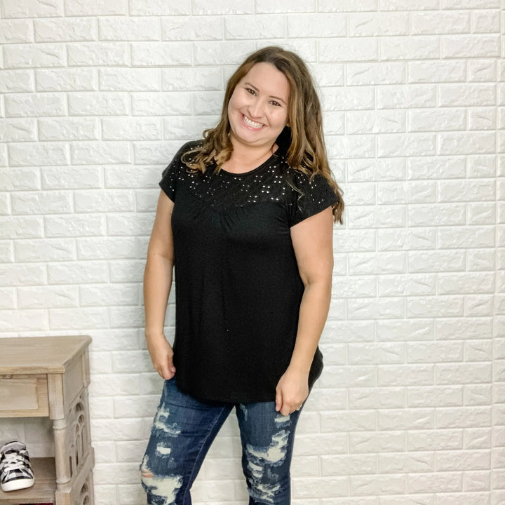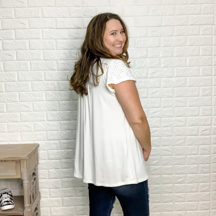 Oversized - Size DownEyelet Accent Top (Spring Blue)