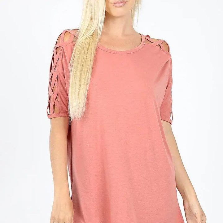 "Reagan" Lattice Sleeve Top (Multiple Colors)