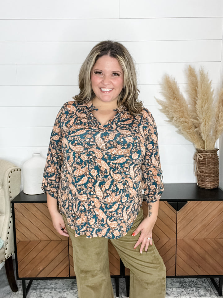 "Greener Pastures" 3/4 Sleeve Button Front Lizzy Luxe