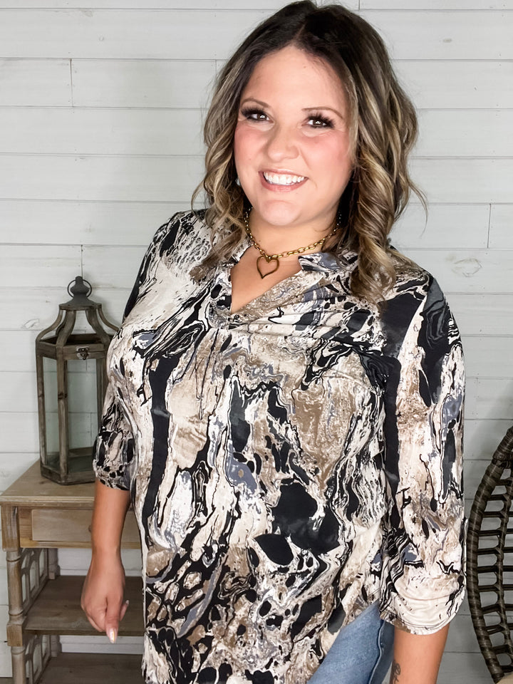 SIZE DOWN! Lizzy Style tops feature a lapel and are fitted at the bust with a roomy tummy. In Dear Scarlett brand tops you'll see a note to size down one from your regular department store size.