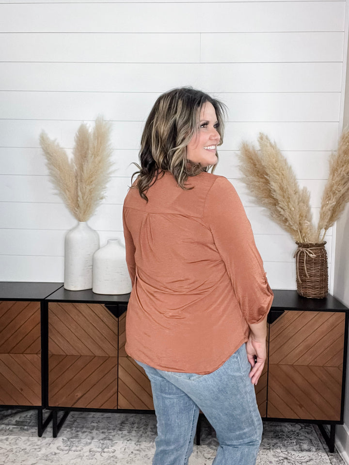 "Timeline" 3/4 Sleeve Split Neck (Rust)